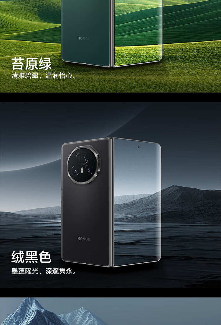 荣耀(HONOR)Magic V5/V3轻薄长续航 青海湖电池 骁龙8至尊AI 折叠屏手机 苔原绿【V3】 16G+512G 国行正品|权益已启用|品质无忧