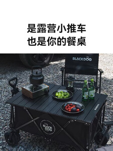 black dog黑狗山影户外露营车宽轮推车野餐营地车折叠聚拢型便携小拉车桌板 黑色 450L 有刹车 【山影Pro-10cm宽轮】