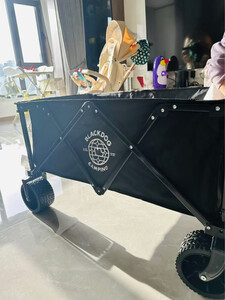 物流速度非常快,昨天下单,今天货物就送到了。车辆空间非常大,框架非常结实。车轮非常粗,非常适合越野。我一直很信任黑狗的产品,家里使用的露营桌、露营椅、天幕帐篷、杯子、盘子等,都是他们家的。黑色非常酷,做工也非常精良。希望黑狗能推出更多新产品,也希望能有更多的优惠活动。我会继续关注并持续购买。