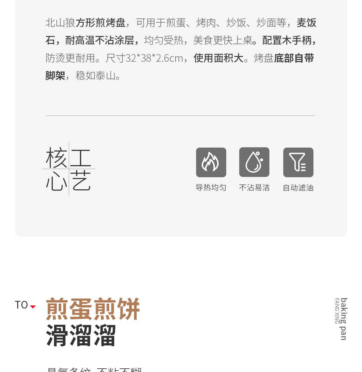 北山狼 韩式烤盘家用 不粘锅户外烤肉盘烤鱼盘 麦饭石煎盘 32cm明火款(带出油口)