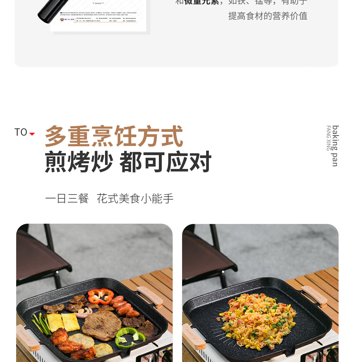 SEAROCK电磁炉烤盘 麦饭石烧烤盘户外野餐烤盘 电磁炉方烤盘021(送夹子+刷子)