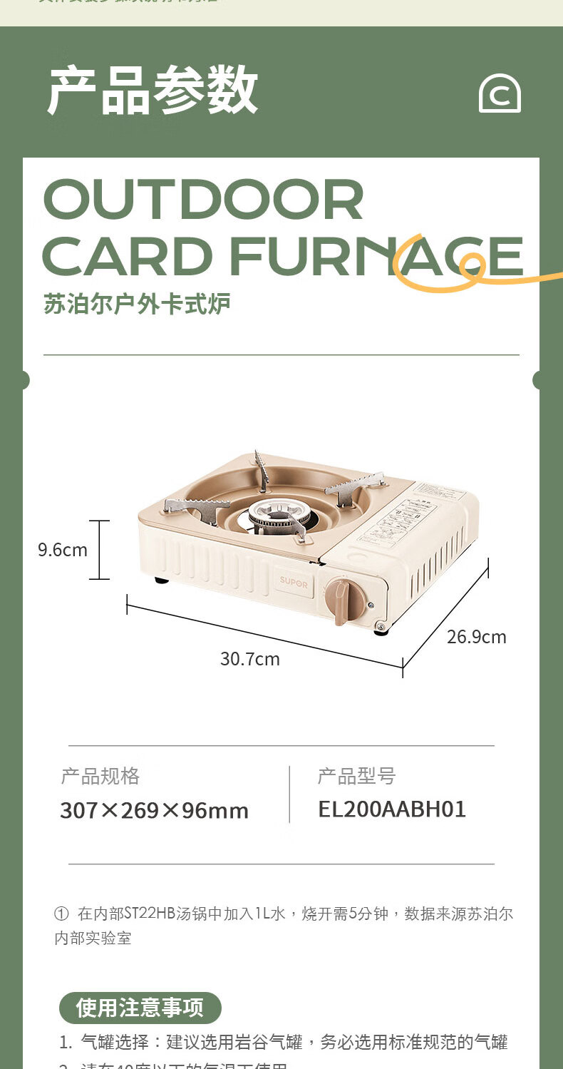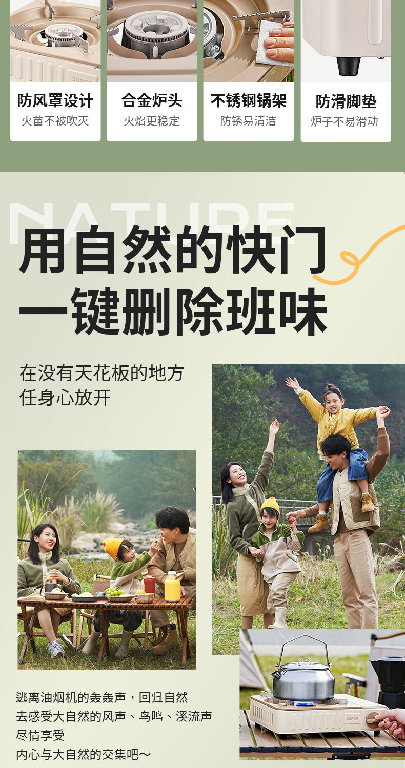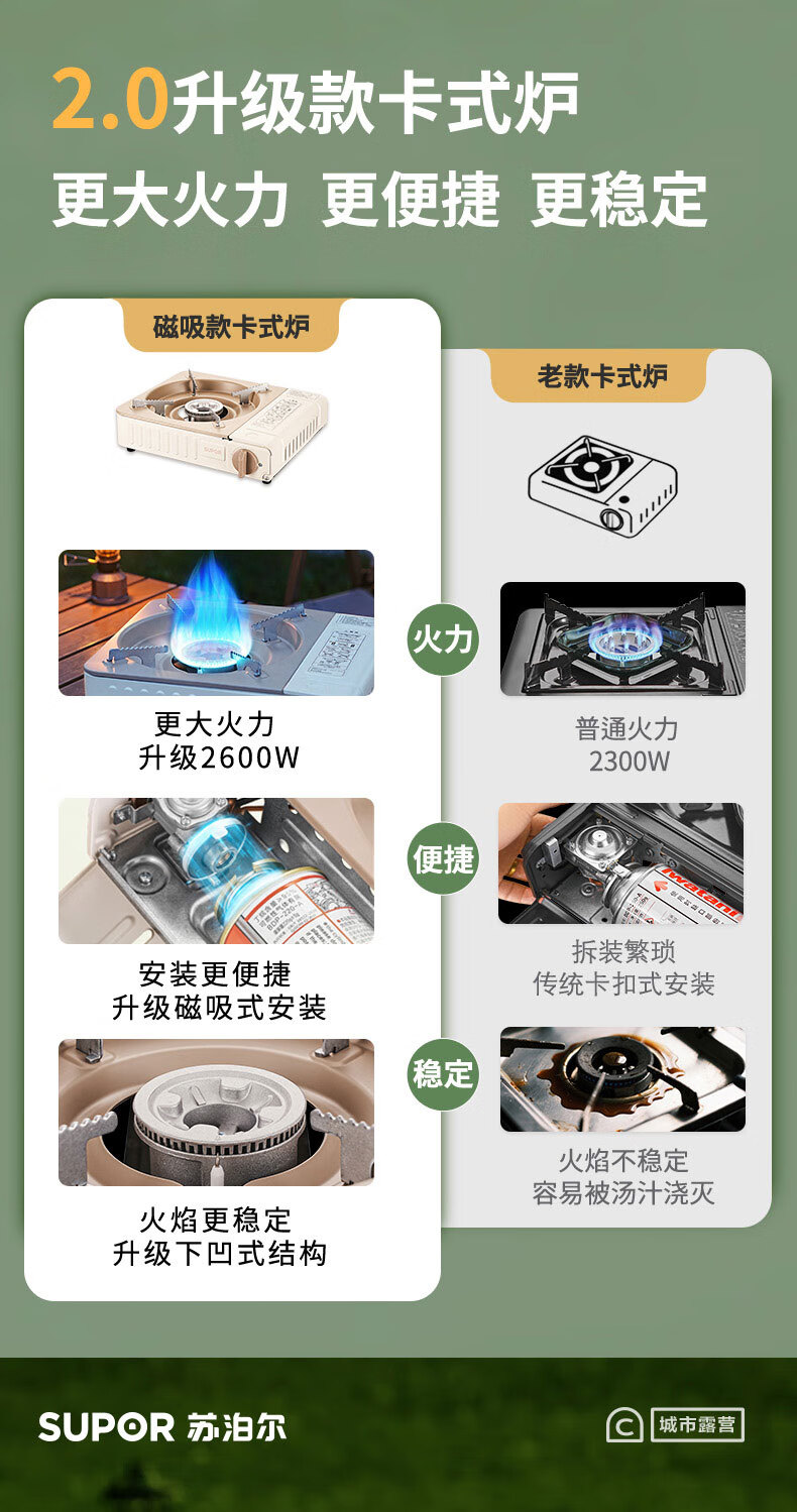 苏泊尔苏泊尔便携卡式炉家用丁烷燃气炉野营烤肉烧烤火锅野 7重安全装置-卡式炉