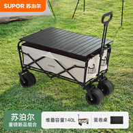 苏泊尔户外露营推车营地车折叠拖车聚拢型野餐摆摊旅行拉车儿童可睡觉 白色 140L 有刹车 碳钢车身+蛋卷桌