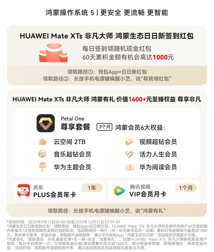 华为2025新款华为Mate XTs 非凡大师 华为三折叠屏手机鸿蒙大屏AI全新 皓白 16GB+1TB 套餐一(同城闪送当日达)