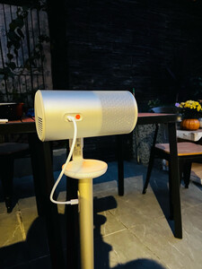 天花板观影模式:很方便,因为它有360°云台,我可以轻松把它转向天花板,然后舒舒服服地躺在枕头上看,颈椎毫无压力!加上实时自动梯形校正,画面永远是正的,这体验,绝了!💪 随心所欲摆放: 床头柜、书桌、甚至飘窗上,想放哪就放哪。