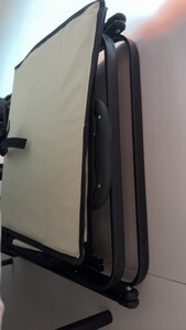 包裹分了三次,第一次是桌板,问了客服说分开寄的,所以按要求到达的只有桌板,车子晚了一两天,车子到了后发现只有空车架,没有那个兜子,联系客服补发了车袋子,收到货就晚了一周了,桌板和车架子质量还行,车袋子特别差,就是最烂的那种布,不柔软,用起来格拉格拉响,而且比较薄,很担心用两回就烂了,车子的轮子只有两个万向轮,另外两个是固定的,拉手不能回弹,松手就倒,可能是规格不同吧,反正我这个规格的是这样子的