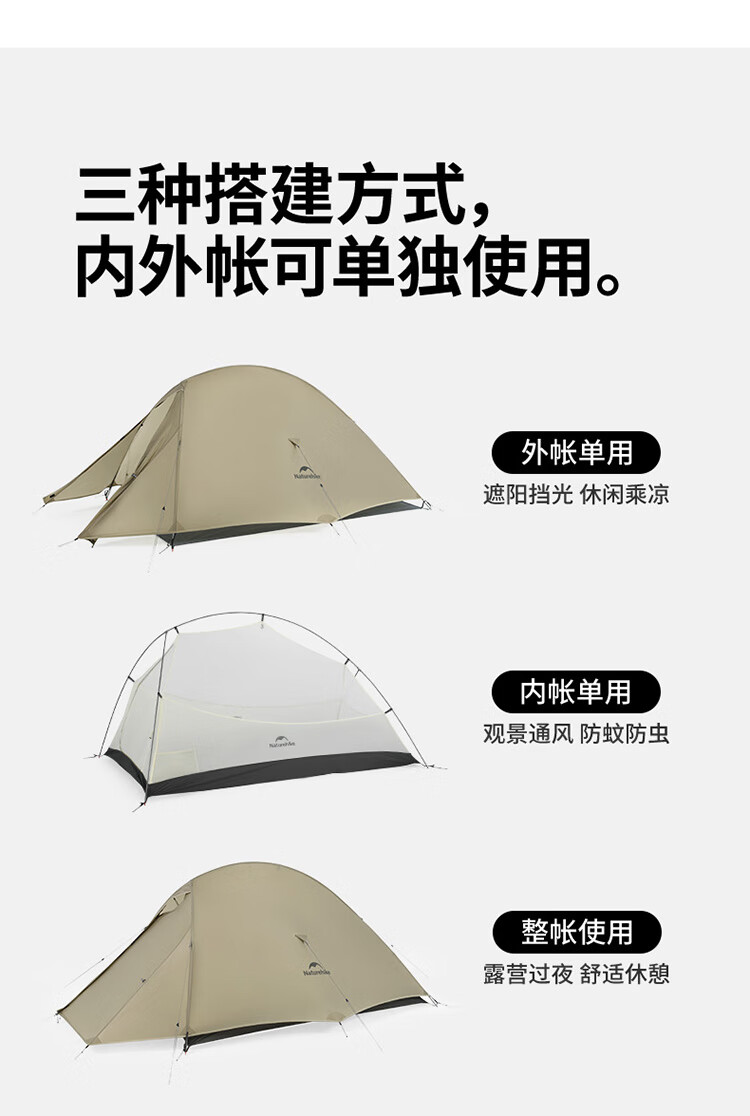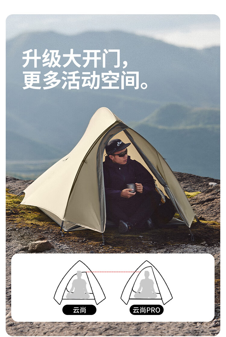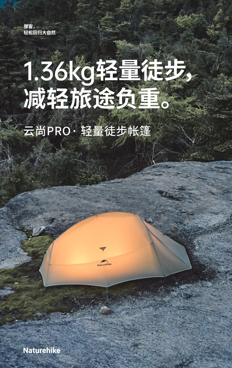 Naturehike挪客云尚Pro徒步登山帐篷户外暴雨级防水抗风超轻1-2-3人双层三季 1人双层/森林绿/20D尼龙