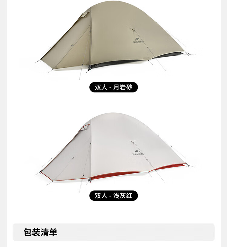 Naturehike挪客云尚pro徒步帐篷防风防雨户外轻量双人帐篷便携露营野营装备 森林绿/双人/20D尼龙