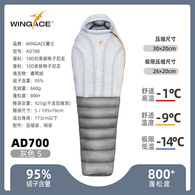 WINGACE翼士重装徒步羽绒睡袋800蓬95番鸭绒木乃伊户外露营轻量化装备 AD700-灰-S