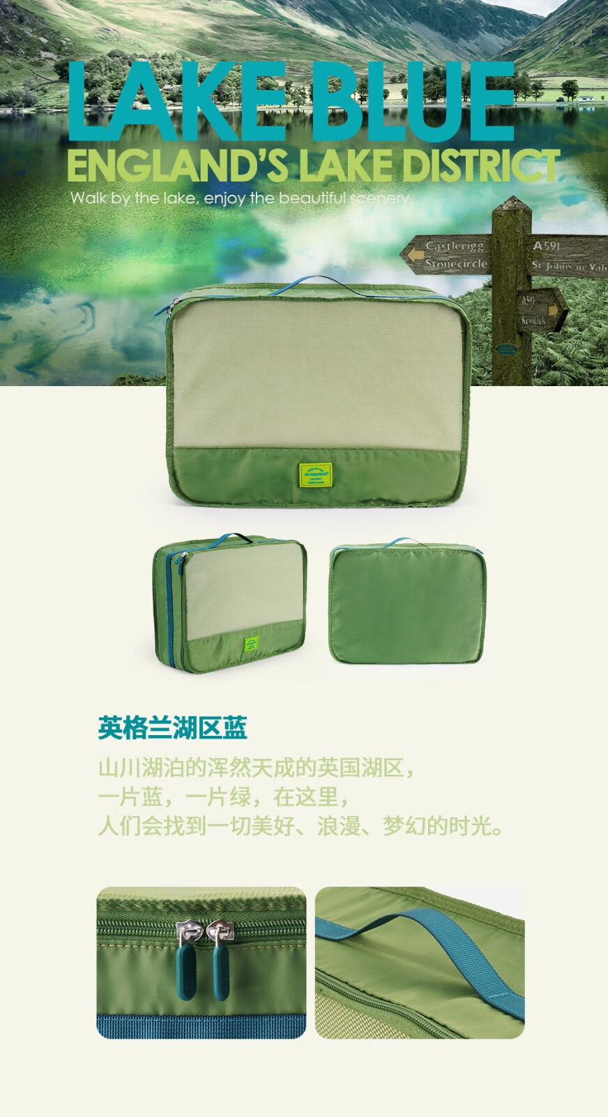 这个大小比较合适,绿色很正,前面网兜方便看具体放了啥,正好可以一套备齐,全绿色组合,出行心情也可以美美哒,以后会继续关注