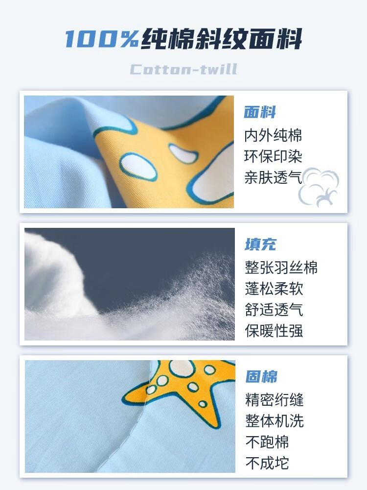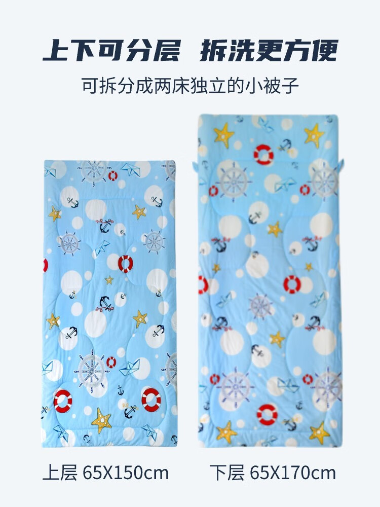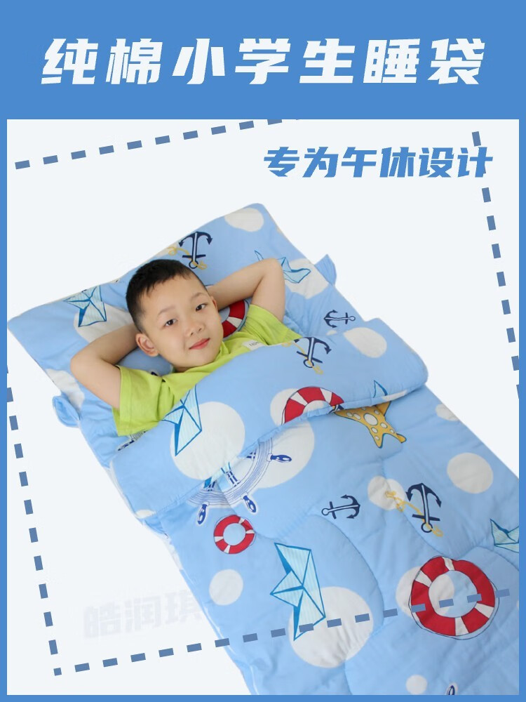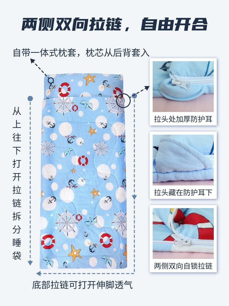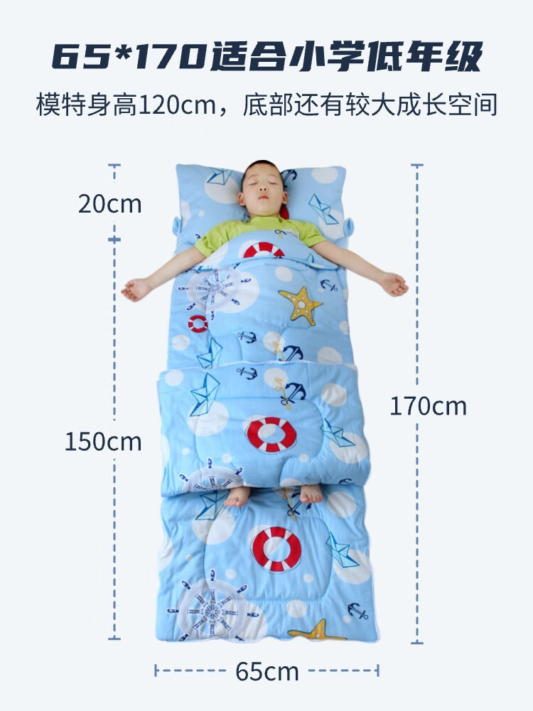 迷跞客纯棉小学生午休学校睡袋儿童午睡被春秋薄款冬季加厚宿舍防踢被 小鹿蓝色冬季(防滑升级款)