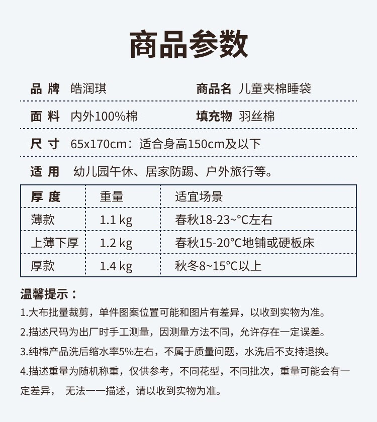 连购买了二件这个品牌的儿童睡袋,尺码合适,布料柔软。可以水洗。五星好评!