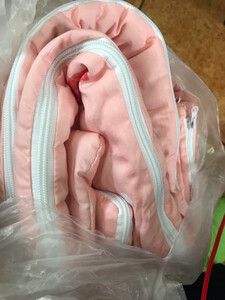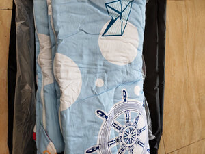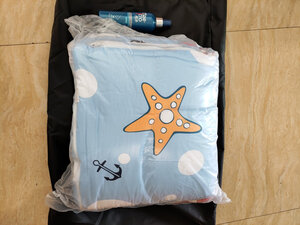 期待已久的睡袋终于到了,非常棒,纯棉透气,上薄下厚,有4个拉链头,脚底处可以外漏,不会`憋着',非常的人性化,哈哈