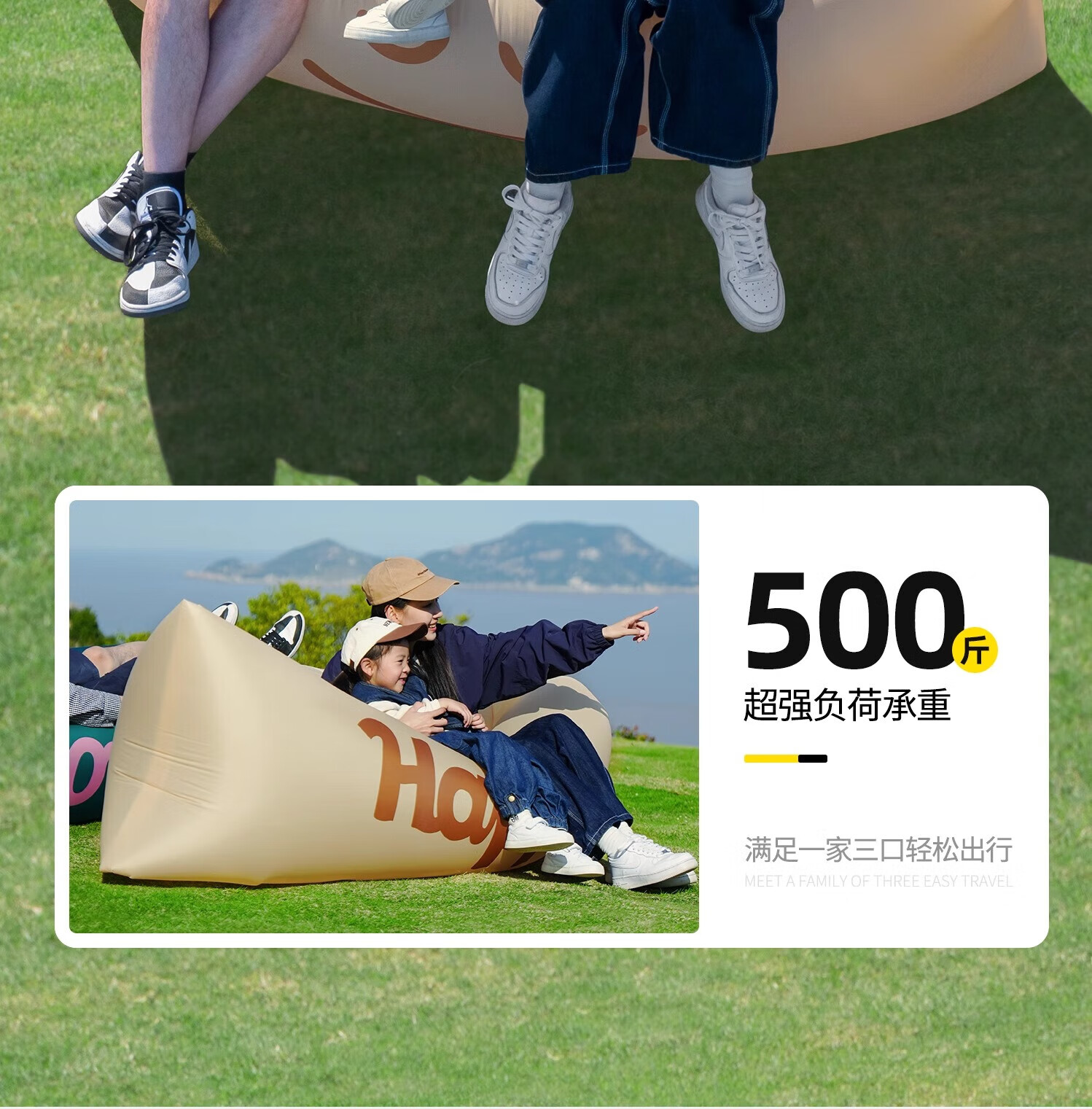 原始人充气沙发户外露营懒人空气单人便携式野营音乐节气垫床坐躺 Happy笑脸【承重500斤】配收纳袋