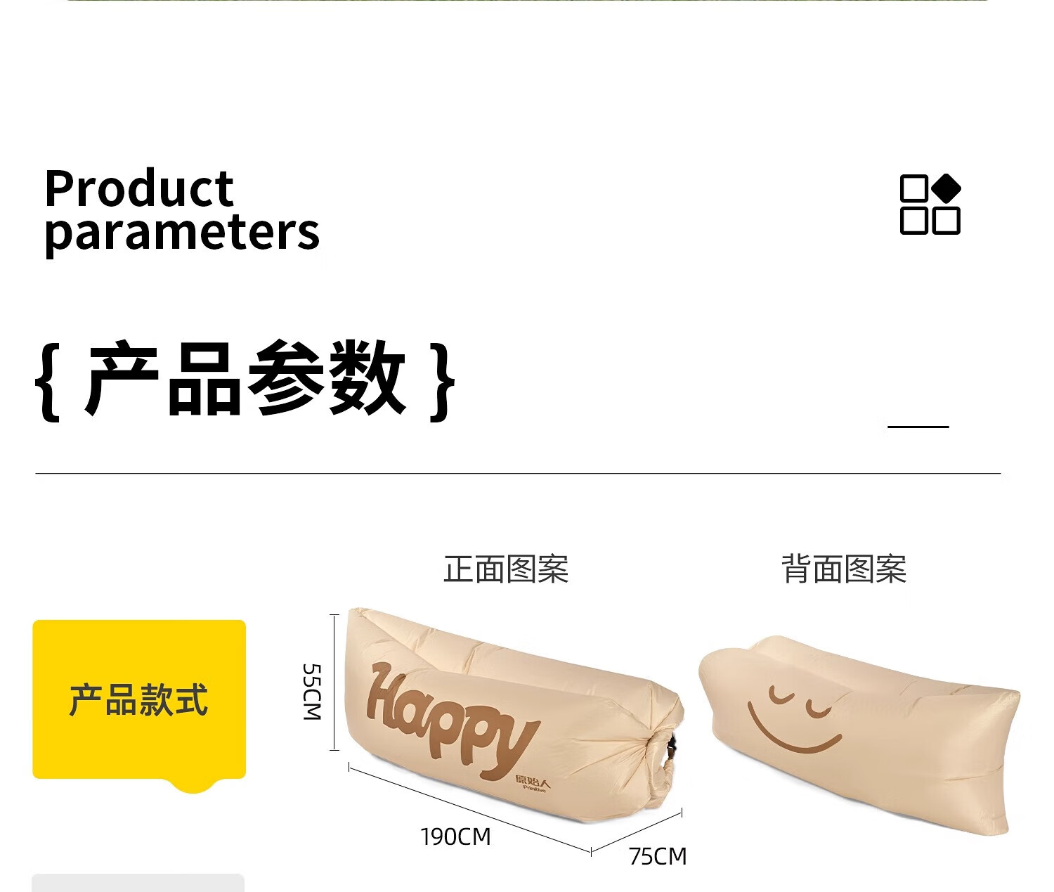 原始人充气沙发户外露营懒人空气单人便携式野营音乐节气垫床坐 加长Happy笑脸【配收纳袋】