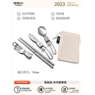 原始人户外餐具露营野餐折叠筷子刀叉勺套装野营多功能不锈钢碗筷