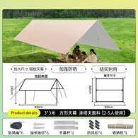 妙普乐天幕帐篷户外装备露营野餐野营黑胶防晒防风防雨遮阳棚布 //.升级冷银胶情侣出行(3*3)