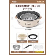 原始人烤火炉烤火盆烧烤架户外取暖炉室内烧烤炉家用碳炭围炉煮茶 白色围炉+304不锈钢烤网