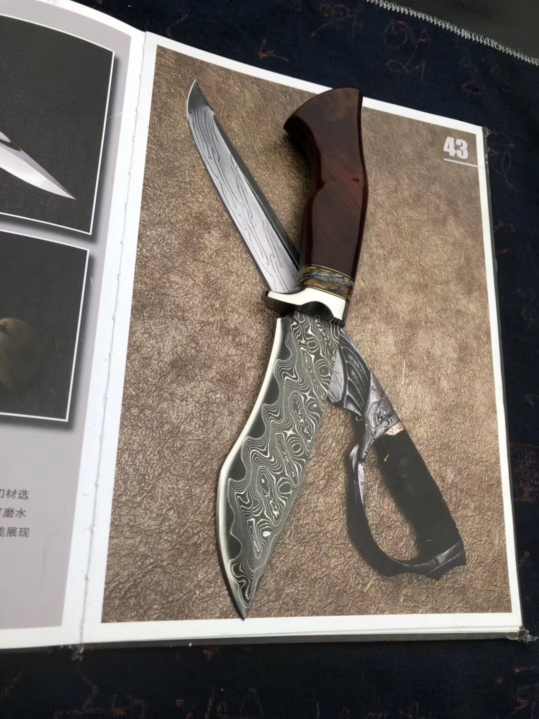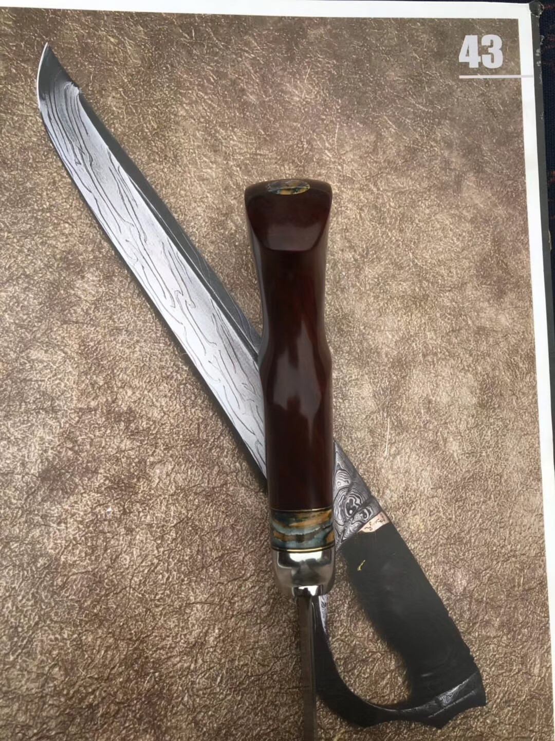 雨轩户外别扭纹大马士革小刀猛犸齿牙化石沙漠铁木手柄瑞典钢锻打羽毛 瑞典