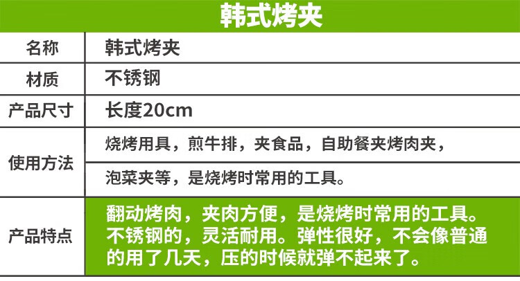 原始人不锈钢韩式烤夹不锈钢食品夹子烧烤配件烧烤工具韩式烤夹 韩式烤夹