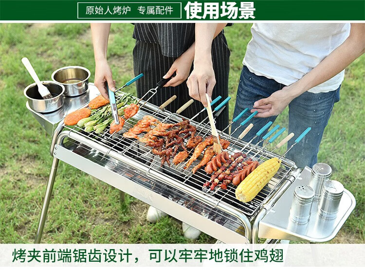 原始人 户外烧烤夹露营野餐野炊厨房家用不锈钢食品牛排烤肉夹子工具 韩式烤夹