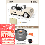原始人(The Primitive)卡式炉户外便携式防风瓦斯炉煮茶炉野营燃气炉卡磁大功率露营商用 红外线米白色炉+大号煮锅