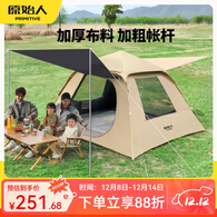 原始人帐篷户外折叠便捷式天幕一体自动露营防晒野外野营装备全套 【冷钛黑胶天幕帐篷.加大号】套餐一