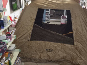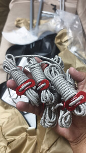 帐篷支起来非常简单快速,三分钟搞定,天幕 也就是第一次需要绳结打扣,之后把绳子收好 就可以非常快速完成了,帐内空间大,天幕也 完全够用