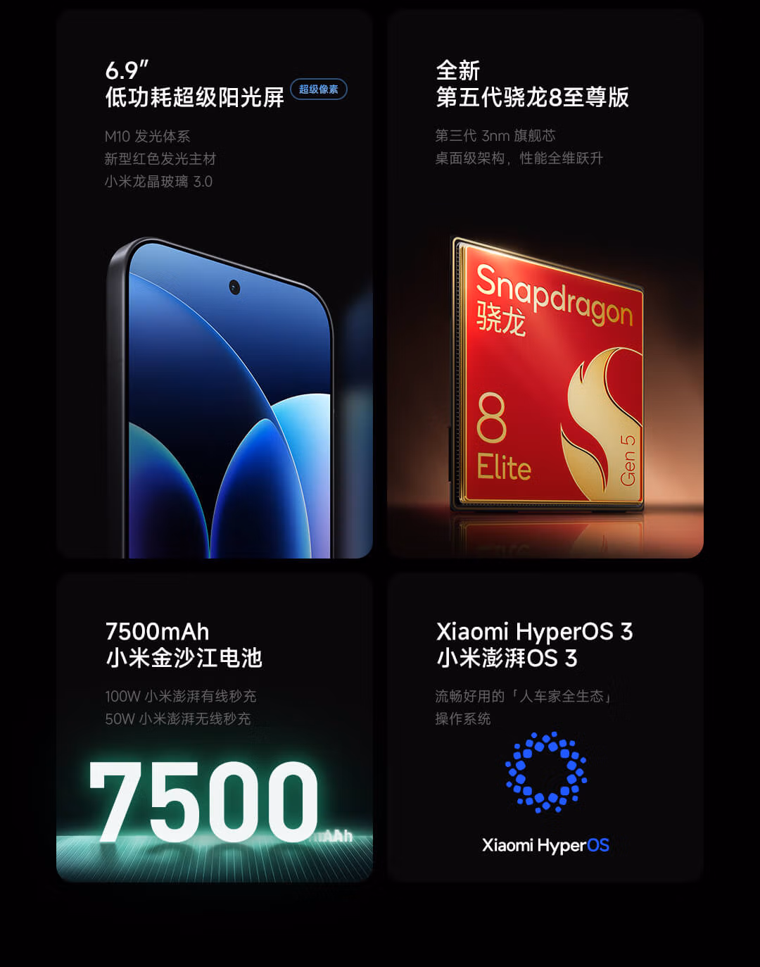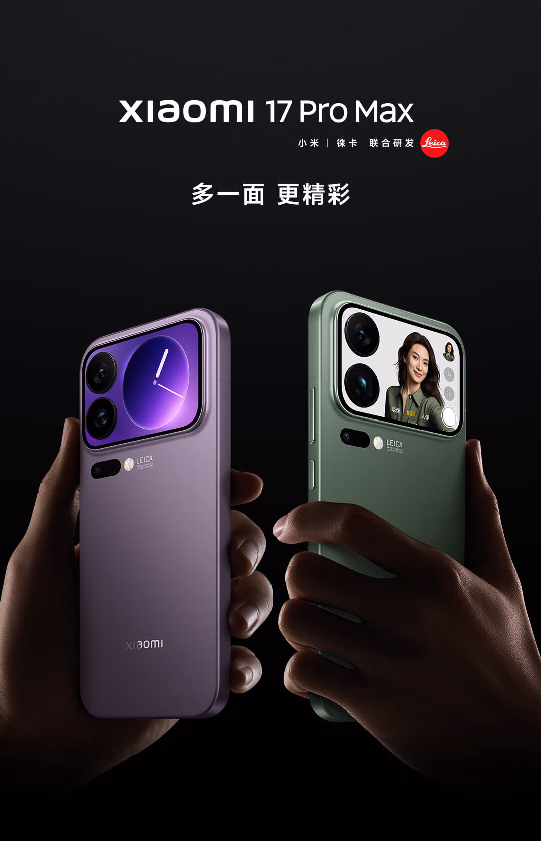 小米(MI)17 Pro Max 新品5G小米手机 妙享背屏 第五代骁龙8至尊版7500mAh小米金沙江电池 选12期/24期 免息 黑色 12GB+512GB 白条【24期/免息】