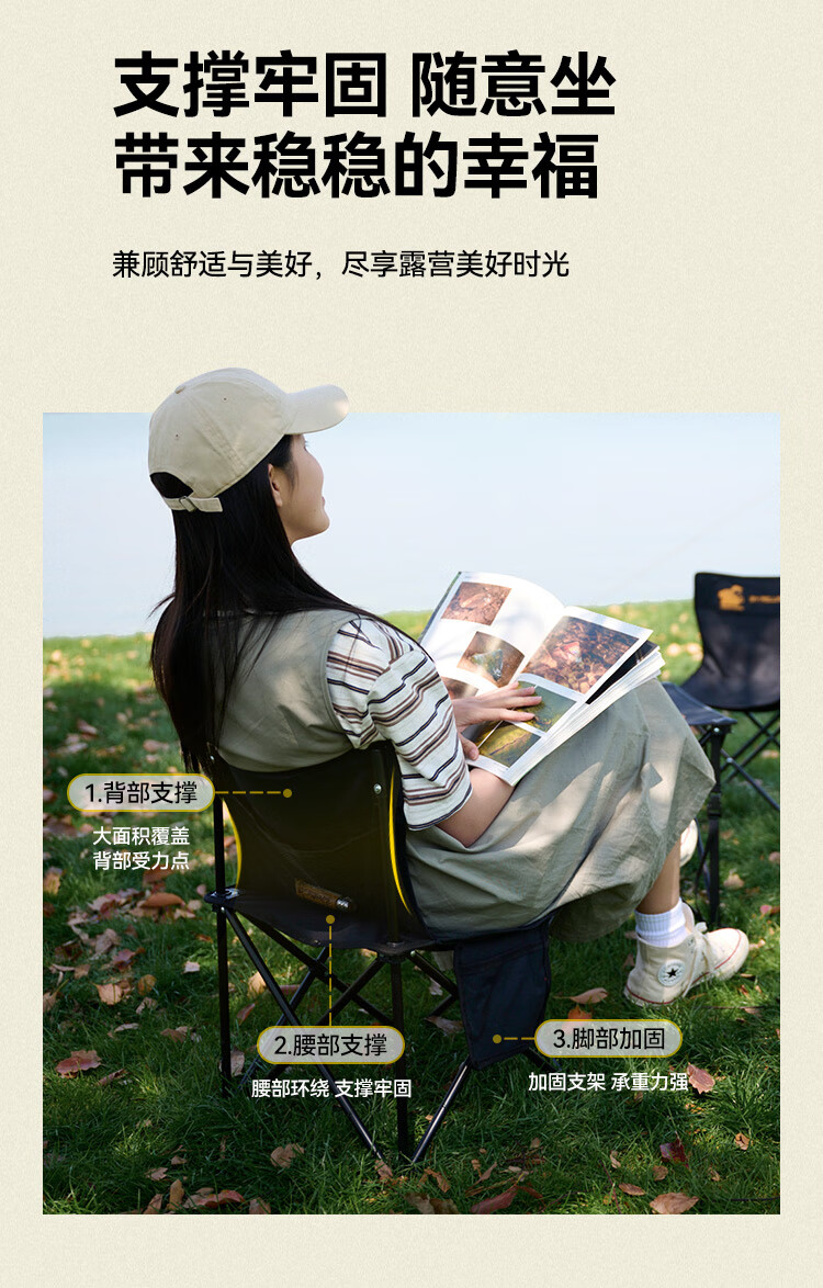 伯希和这款折叠椅太实用了!曜石黑颜值耐脏,收纳后小巧不占地,拎着去露营、钓鱼超方便。面料结实透气,坐感舒适不硌腰,承重也靠谱,细节做工扎实,户外出行必备好物,性价比拉满!