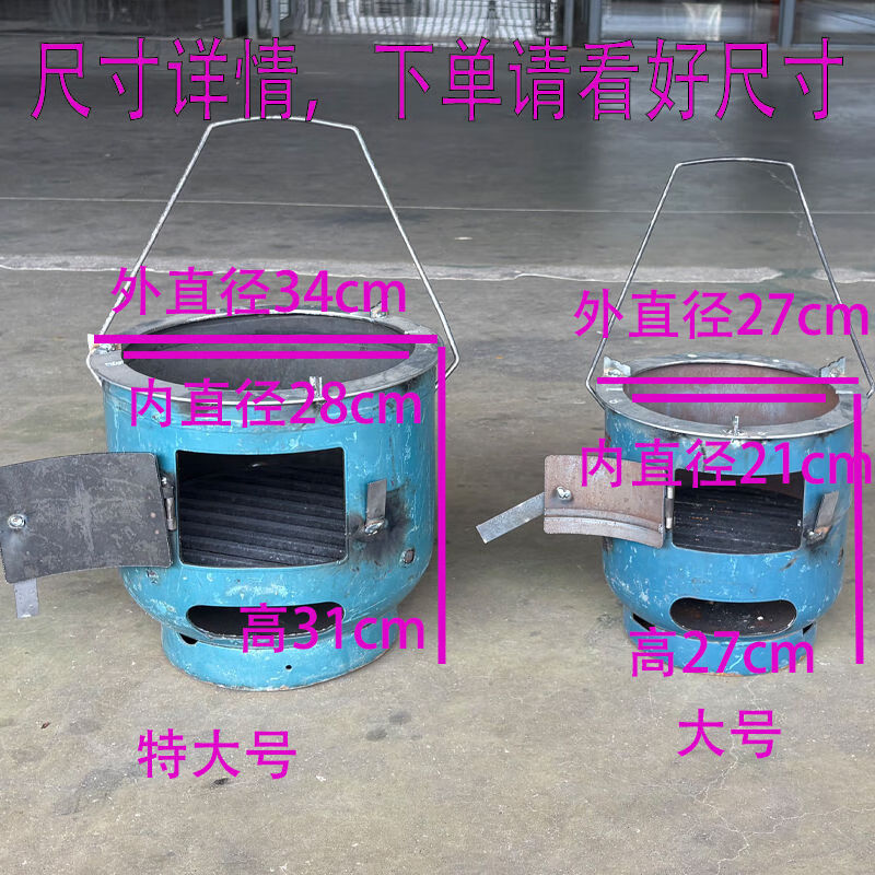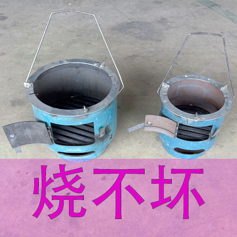 谷舰沐加厚钢板炉柴火炉木炭炉围炉煮茶取暖户外烧烤家用多功能烧煤煮饭 大号便捷炉N