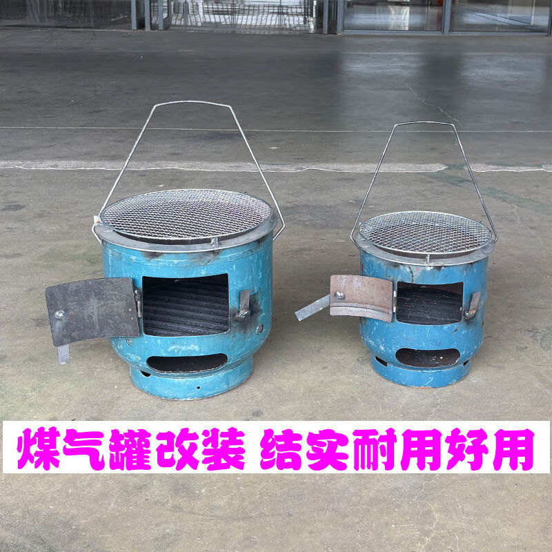 双幼柴火炉围炉煮茶取暖烧烤煮饭煤气罐野炊烧柴引火点碳桶加厚 大号煤气罐改造火炉