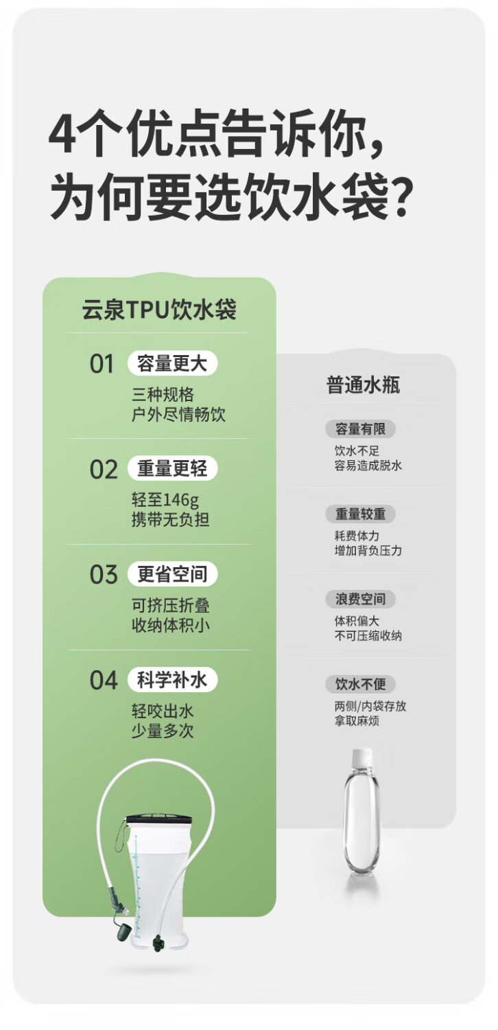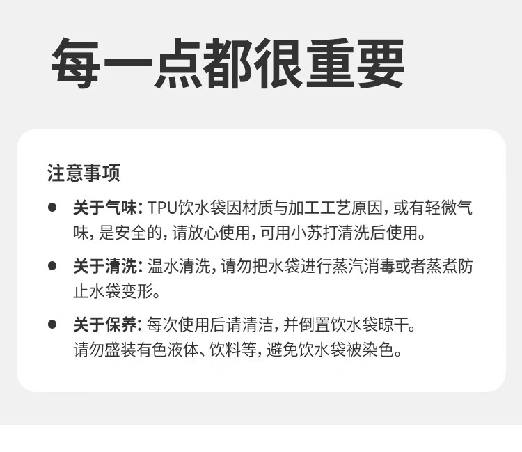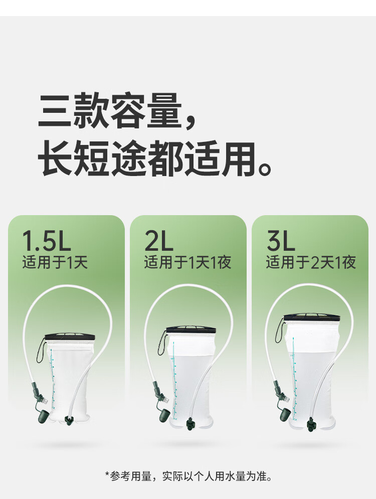 非常好的水袋,味道不大,清洗起来也挺方便的,可以装2升水,绝对可以满足单日徒步爬山的需求,而且非常环保,满意