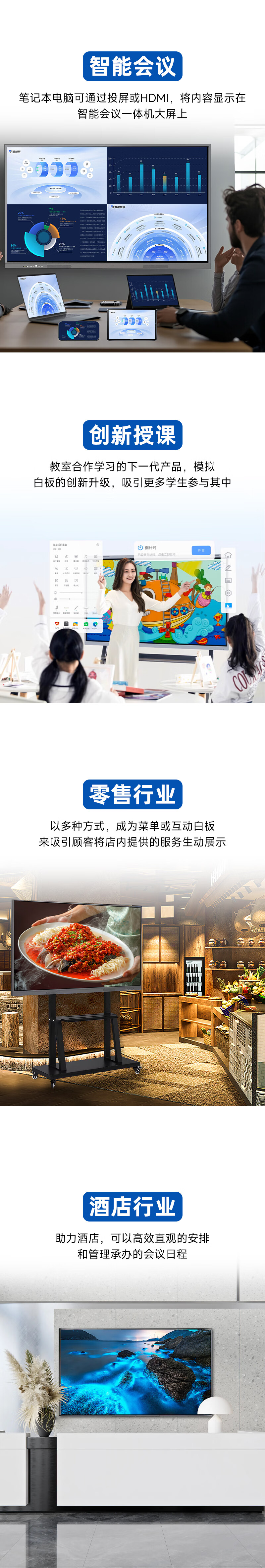 华为新款4K会议教学触摸一体机多媒体65 75 85 100寸电子白板 65寸i7/8+256双防蓝光屏幕