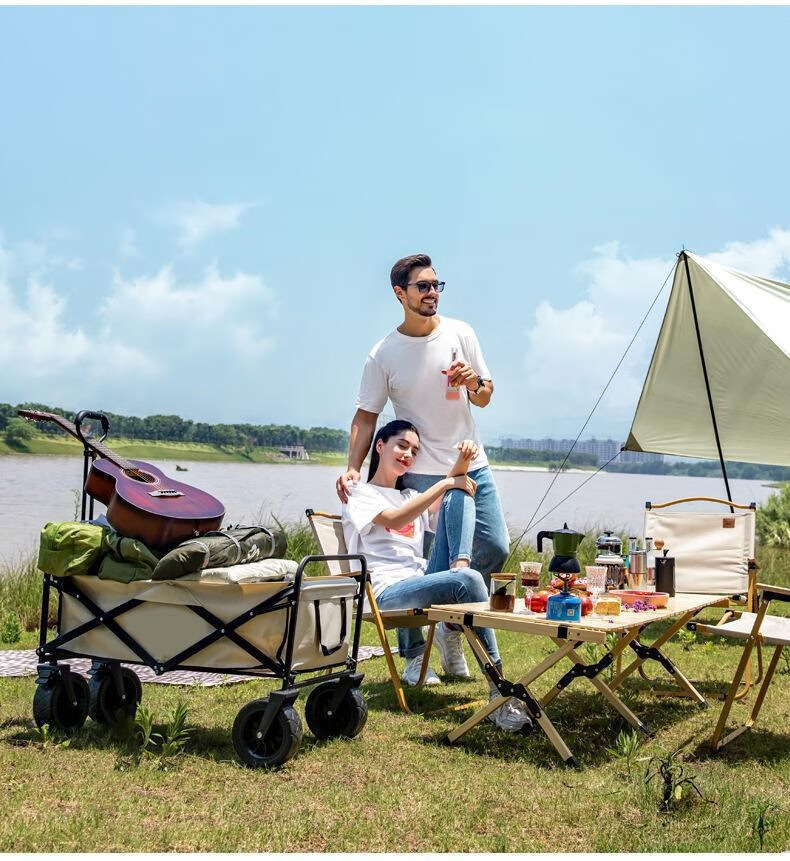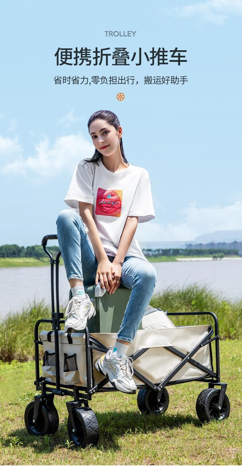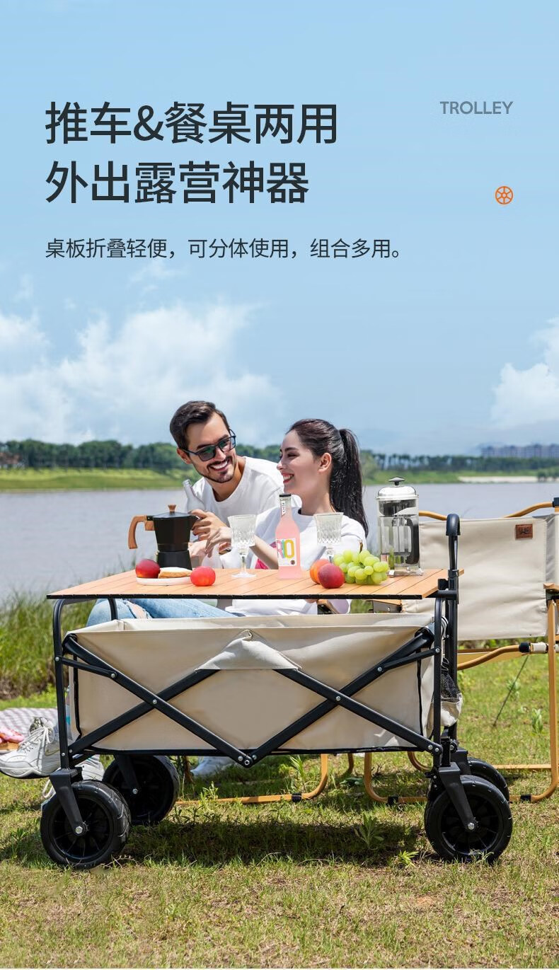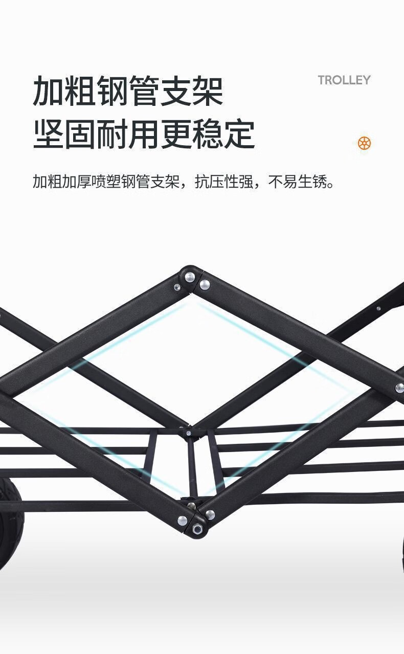 户外摆摊小推车 可折叠夜市集市地摊小车户外露营车拉货多功能小 8寸升级越野黑轮带刹车(黑色