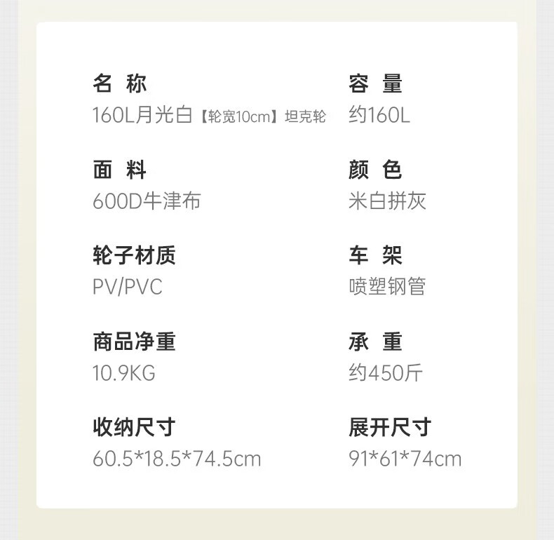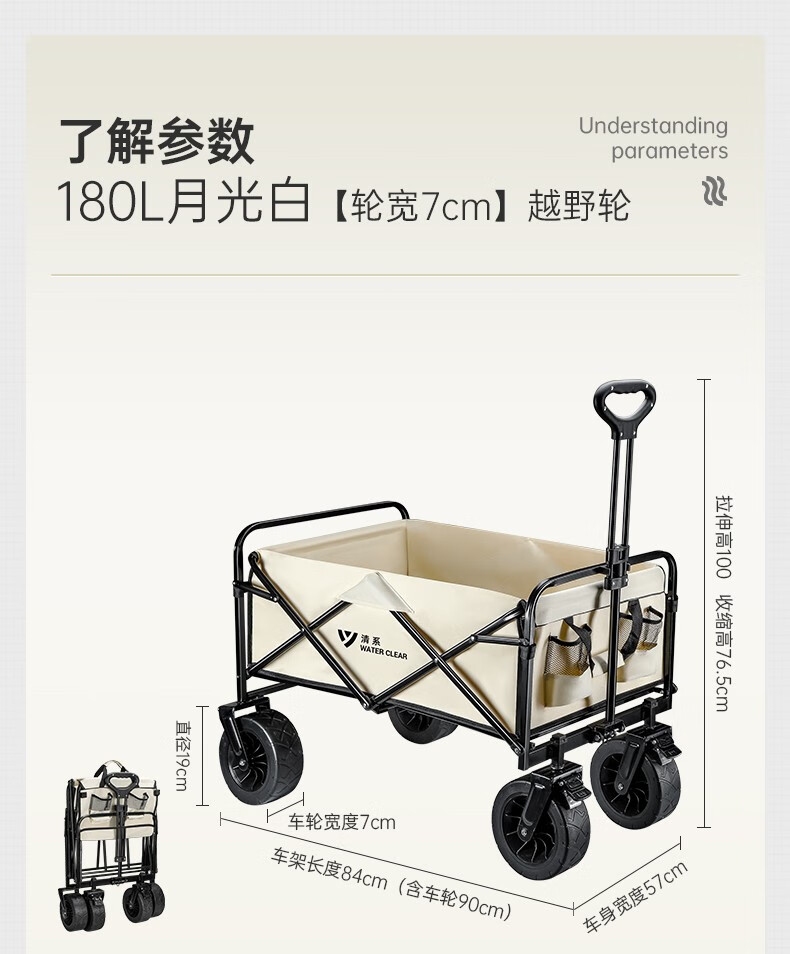 清系露营车野营车聚拢型折叠推车营地车露营推车户外手推车摆摊推车 160L 月光白桌板套餐