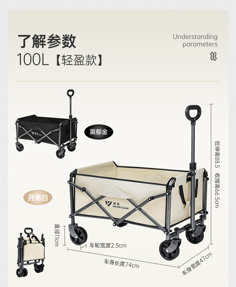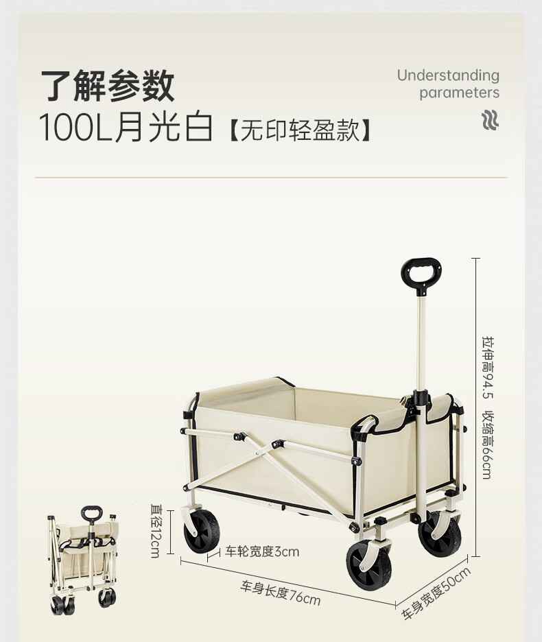 清系 户外露营折叠车野餐车营地车露营装备便捷拖车推车购物旅游买菜 100L 5寸-小号款
