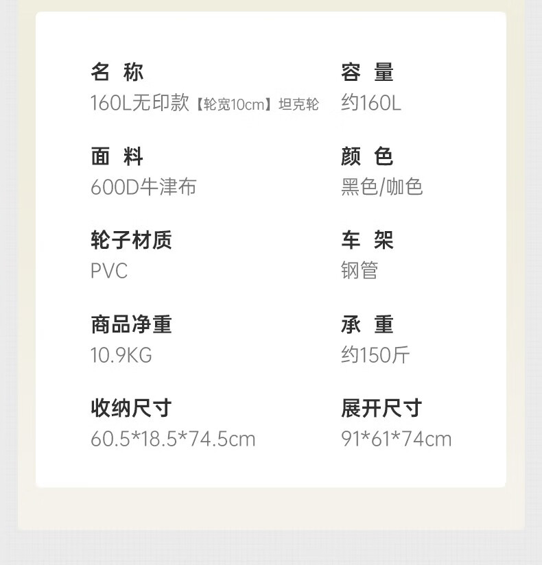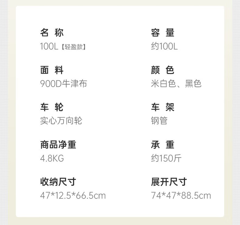 京东京造 150L聚拢型坦克轮可拆轮露营车专用配件遮阳棚雨棚