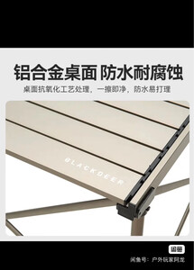 黑鹿(BLACKDEER)铝合金蛋卷桌户外野餐烧烤食物桌沙滩露营便携式置物桌子 铝合金蛋卷桌 曜夜黑 L