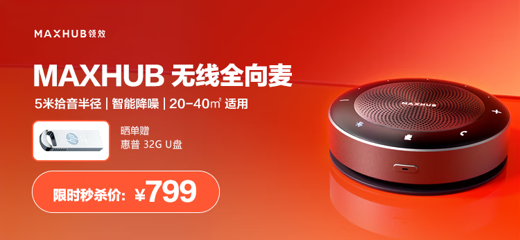 MaxHub 全向麦颠覆传统会议体验!360° 收音无死角,AI 降噪 + 回声消除技术让沟通纯净如面谈,蓝牙 / 有线双模切换自由,续航持久,强烈推荐给所有追求高效协作的团队!