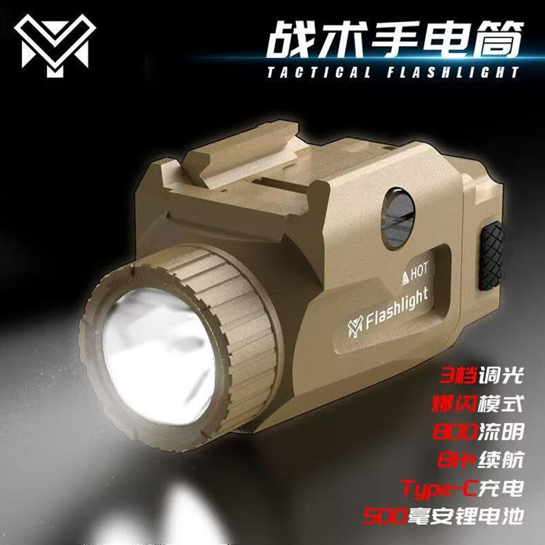 MRY合金下挂800LM常量爆闪双模式超长续航金属电手格洛克战术手电 金属款沙-800流明【送线送袋】