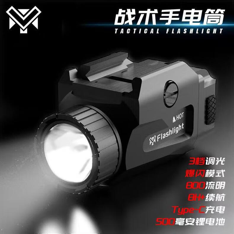 MRY合金下挂800LM常量爆闪双模式超长续航金属电手格洛克战术手电 金属款黑-800流明【送线送袋】