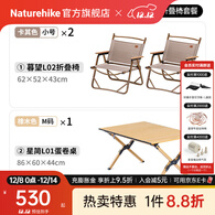 Naturehike挪客暮望超轻铝合金折叠椅户外露营椅便携式野餐钓鱼沙滩懒人椅子 卡其色小号2人桌椅套餐