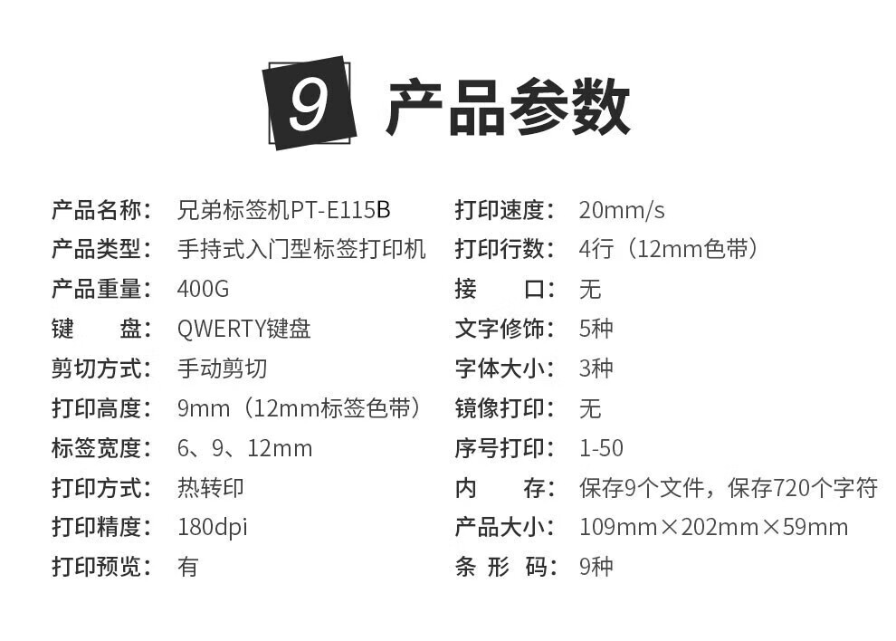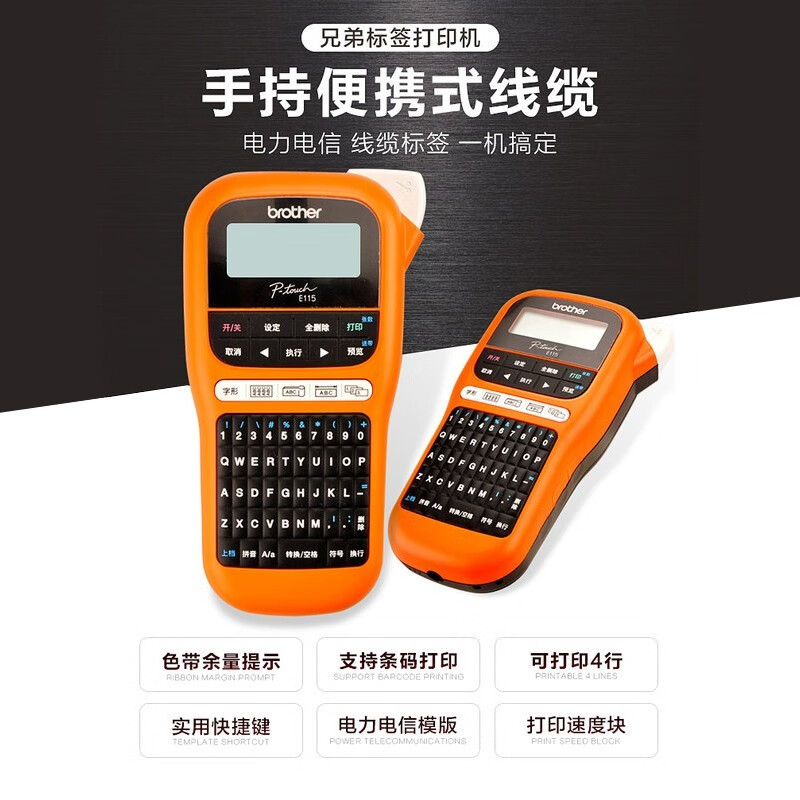 兄弟标签机PT-E115B标签打印机不干胶便携手持式线缆网络布线机 官方标配+5卷色带 不含税