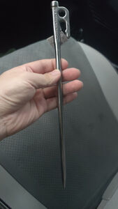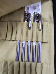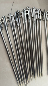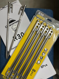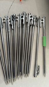 地钉质量非常好,很硬,不可能弯曲,前面几根用了两年也没有一点锈看不出任何磨损,钉好后很牢固天幕拉的很有型,并且大风也不会倒。