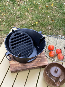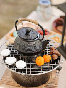 探险者围炉煮茶烧烤炉家用户外铸铁烤炉烧烤室内取暖炉烧烤火盆炉木炭 中号铸铁水壶