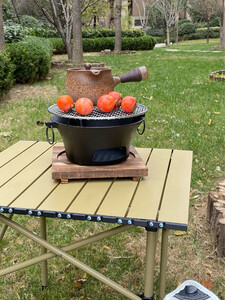 Nobana户外露营煮茶取暖炉铸铁碳炉野营家用木炭烧烤BBQ烤肉火锅碳烤炉 AHUI137 加大号28cm炉+木底座+圆形烤网30.5cm+烤