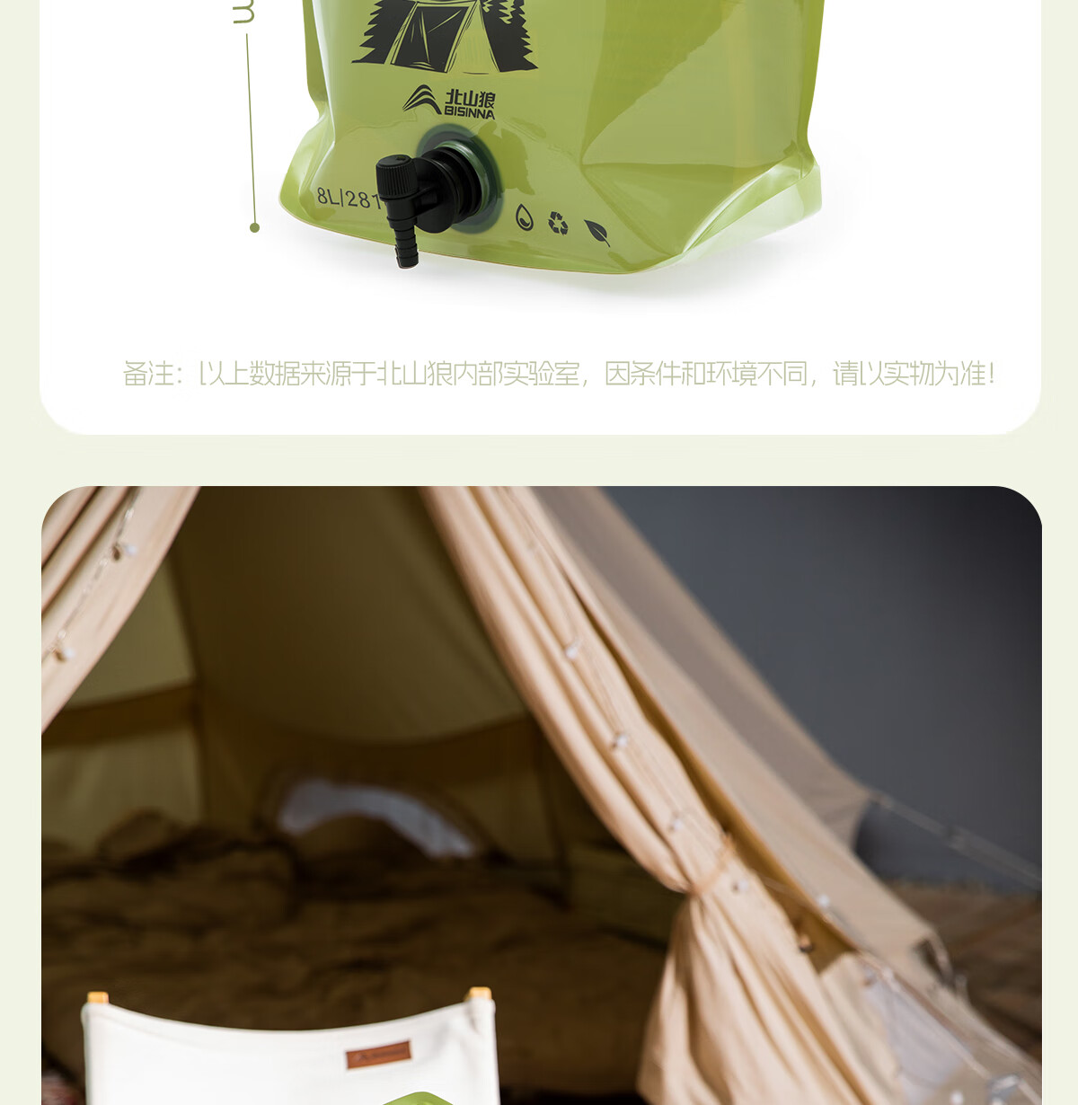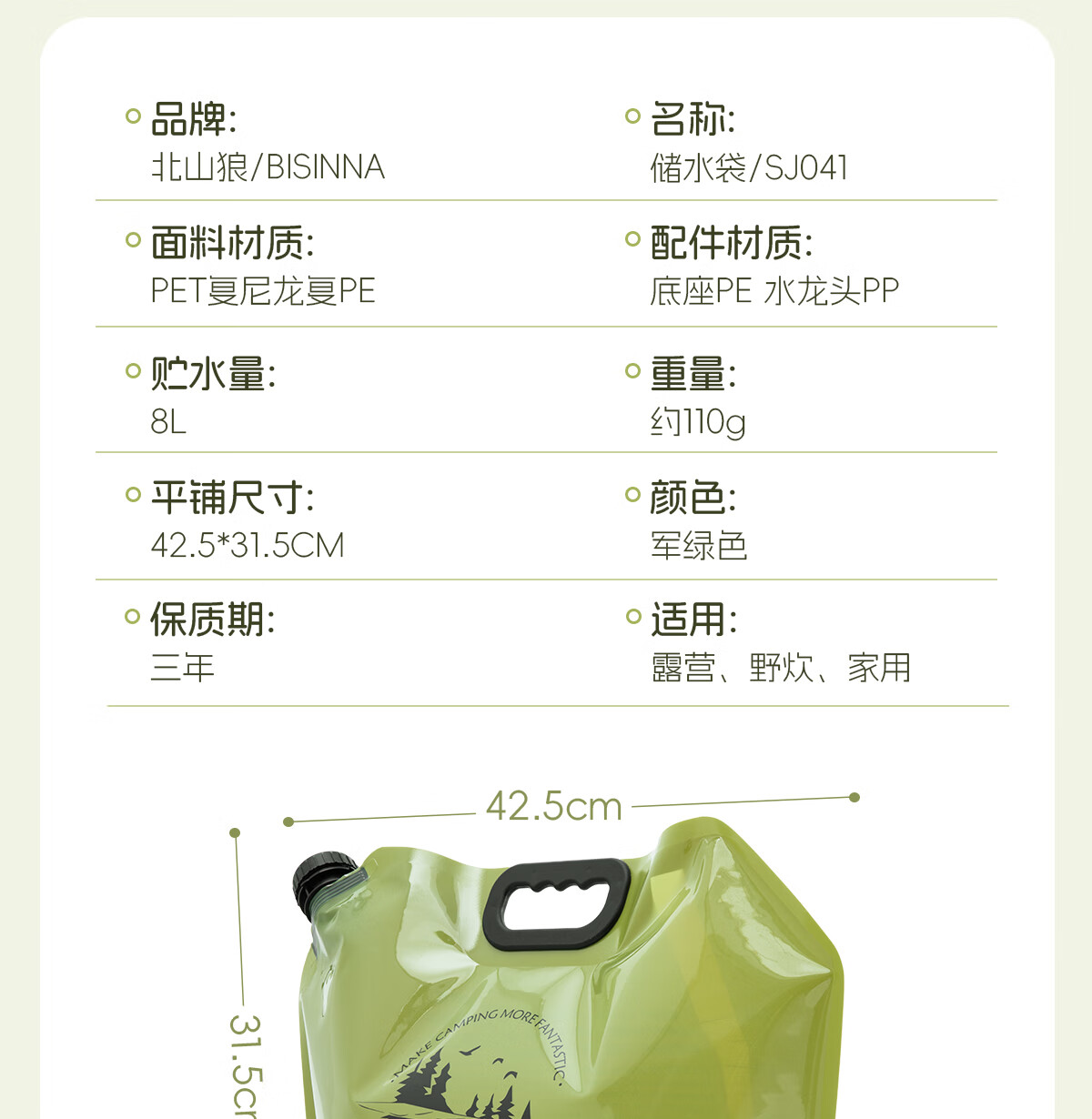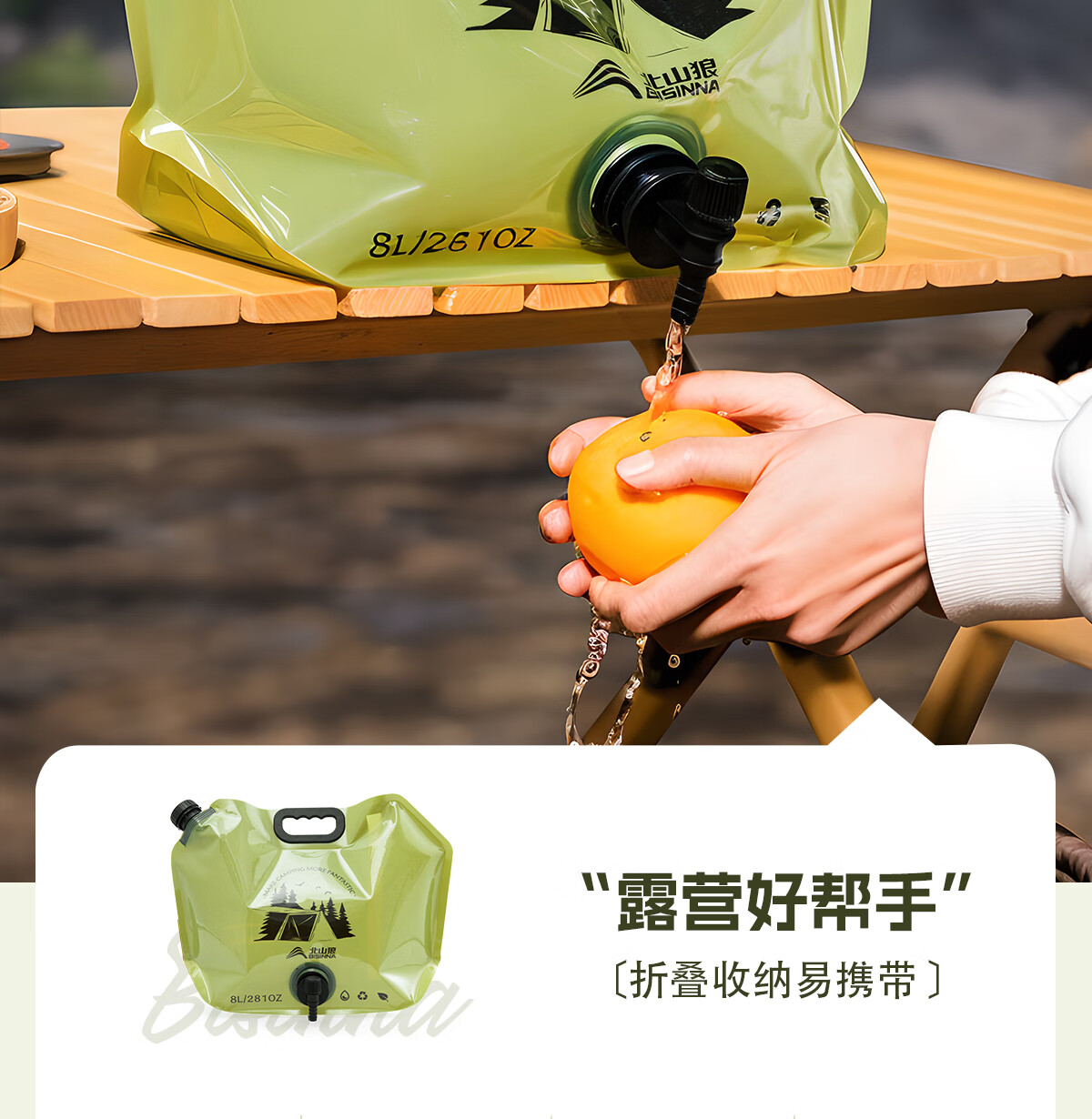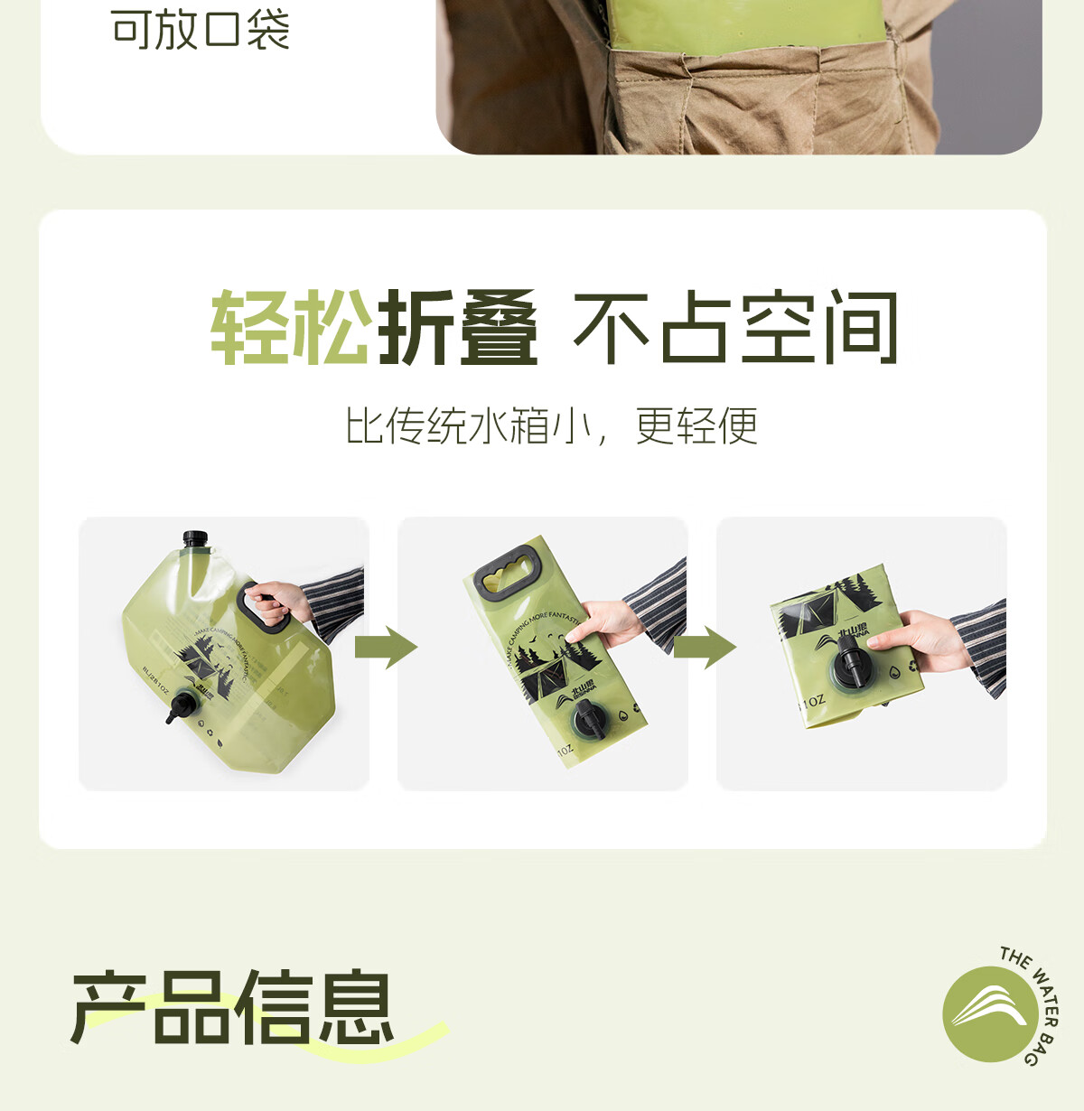 北山狼 水袋户外便携折叠式大容量加厚软体储水袋野外露营车载用 8L军绿色