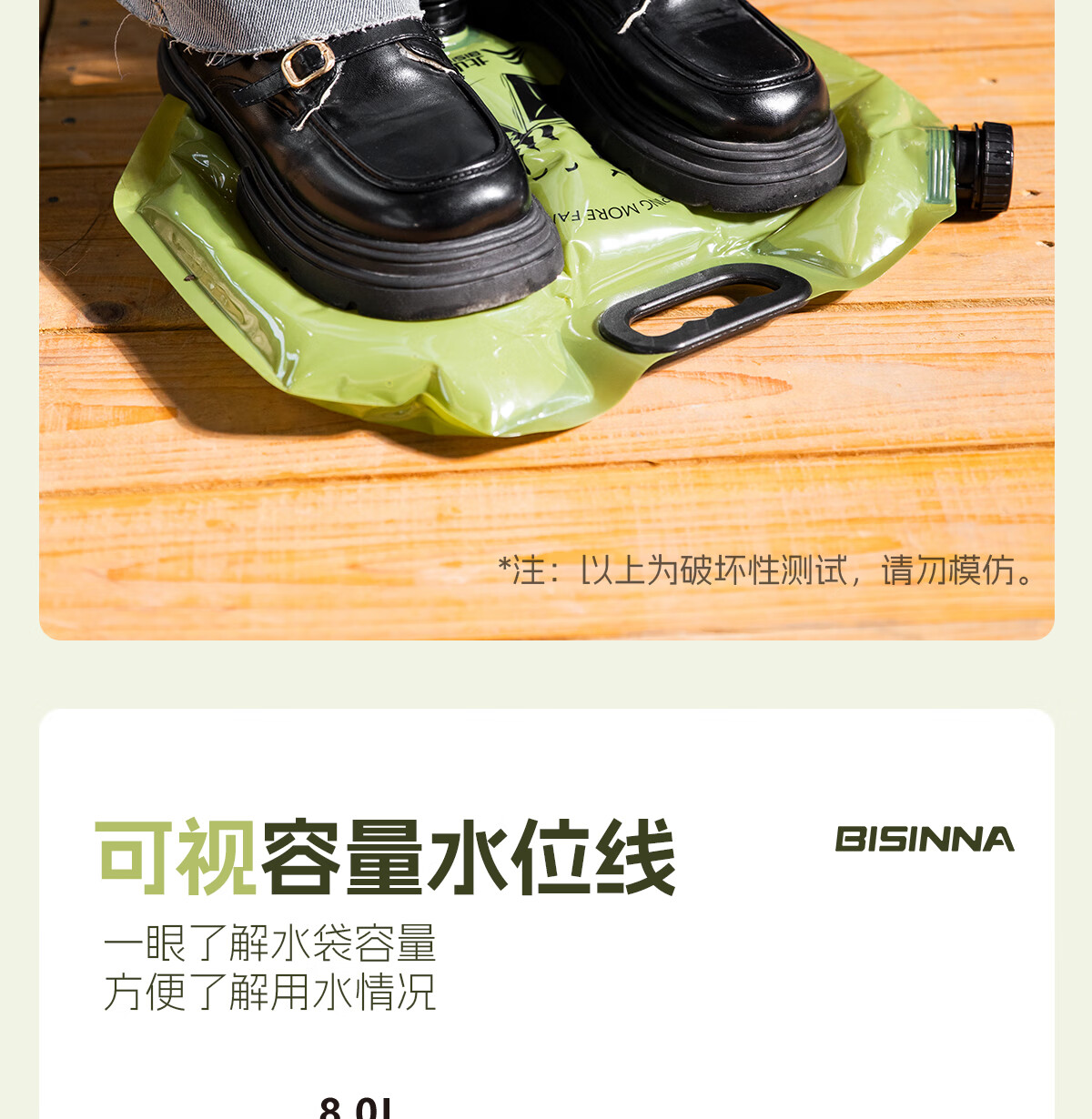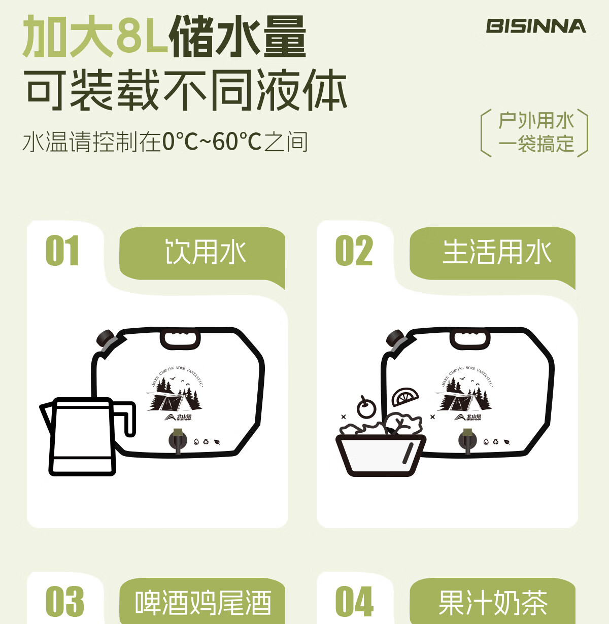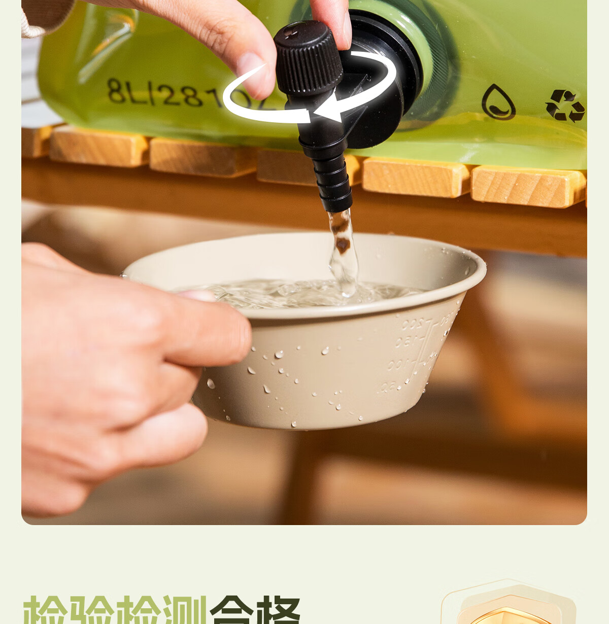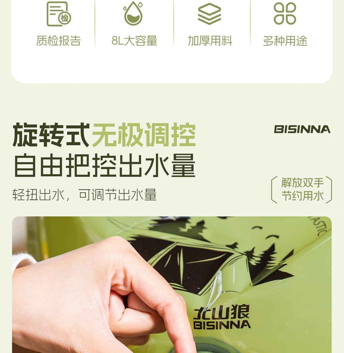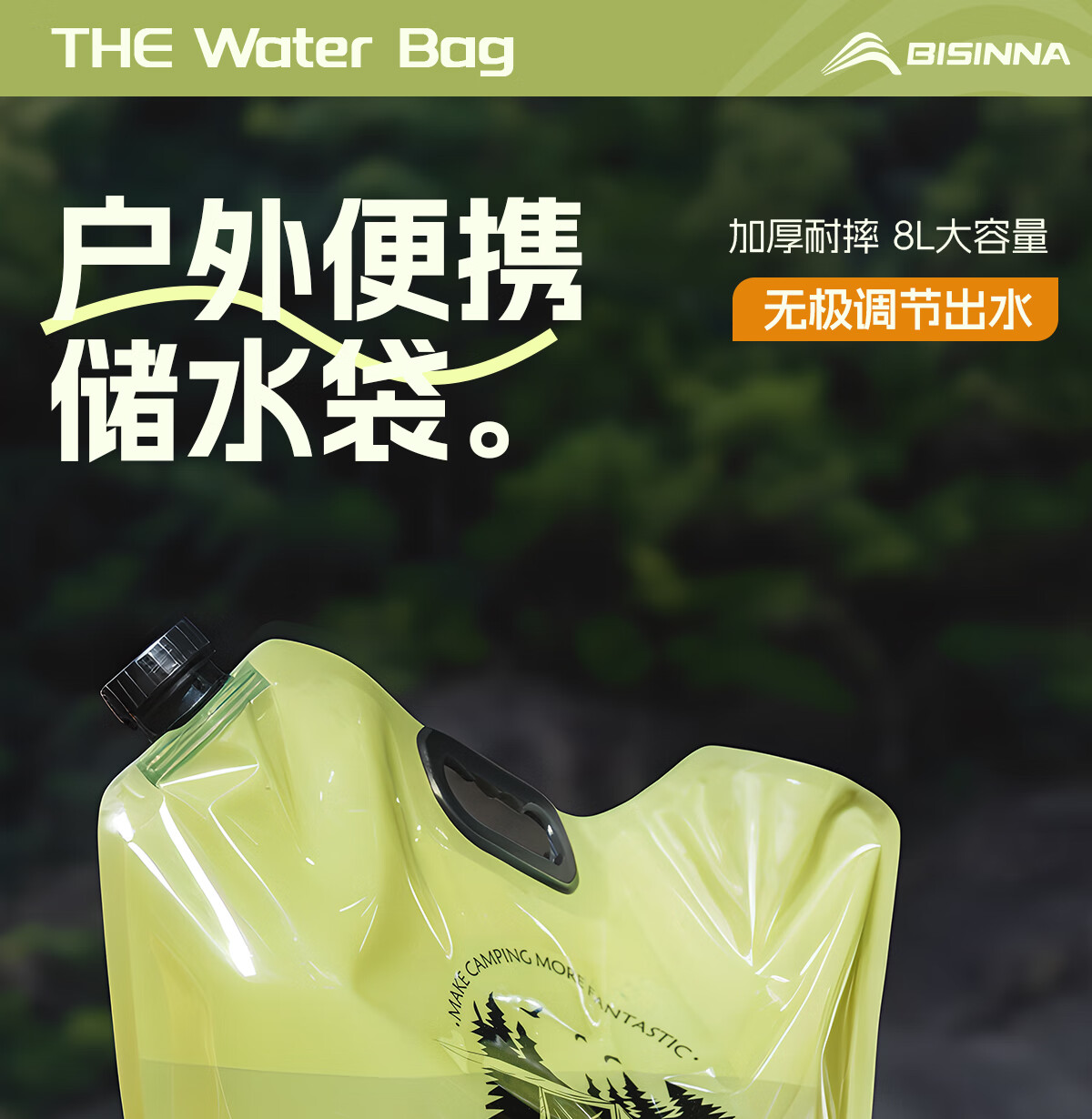 北山狼 水袋户外便携折叠式大容量加厚软体储水袋野外露营车载用 8L军绿色