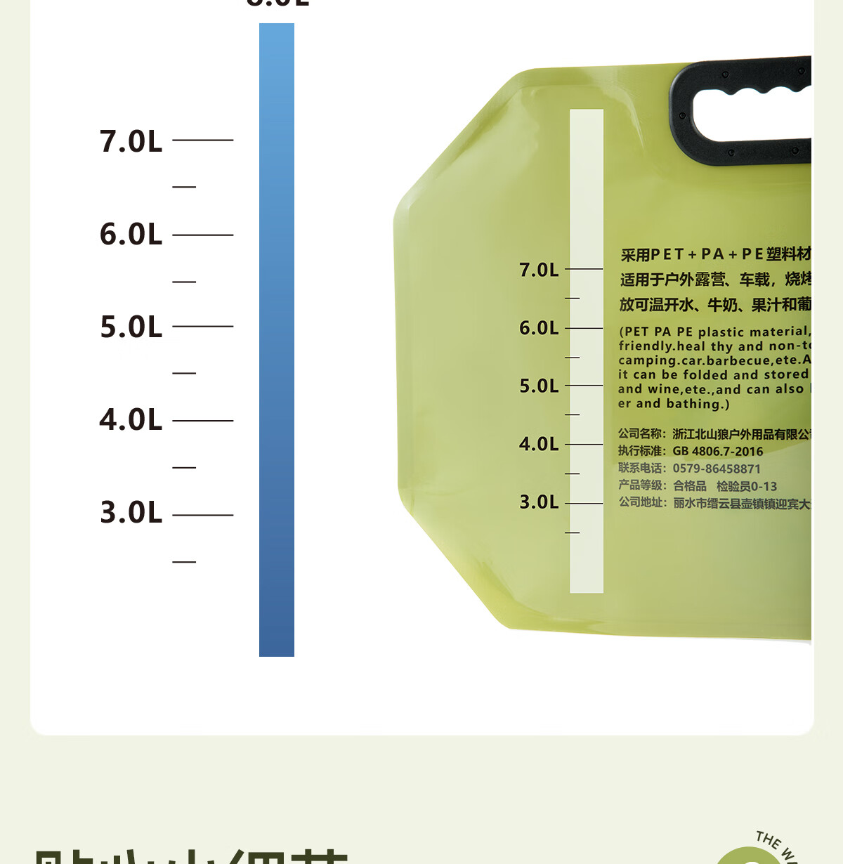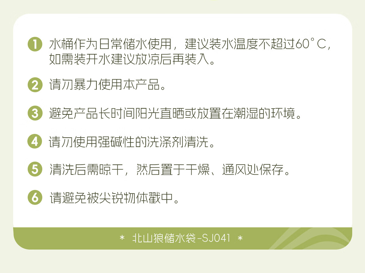 北山狼 户外便携折叠水袋 加厚装水软水袋徒步露营大容量储水袋 10L墨绿色【爆升级·巨能装】